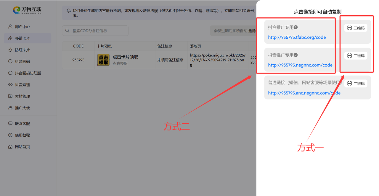抖音卡片分为两种方式领取,请根据自身条件进行选择